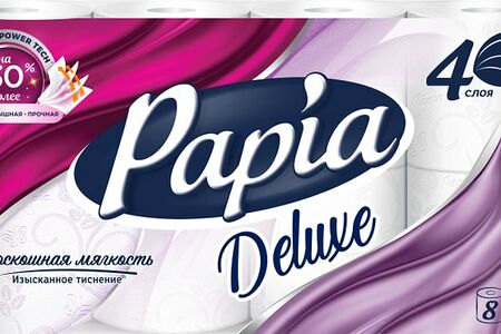 Бумага туалетная Papia Deluxe белая, 4 слоя, 8 рулонов. Туалетная бумага Papia Deluxe четырехслойная белая с тиснением и перфорацией. Уникальная итальянская технология изысканного кружевного тиснения Pixel, разработанного специально для Papia, делает бумагу не только более эстетически привлекательной, но и более приятной на ощупь. Двустороннее тиснение бумаги обеспечивает лучшую впитываемость и мягкость с обеих сторон. Обновленная Papia — выбор тех, кто всегда стремится к большему. Благодаря новой инновационной технологии Termo Power Tech теперь еще более мягкая, пышная и прочная.