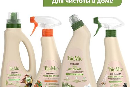 Набор для уборки BioMio Чистящий спрей для ванной Грейпфрут 500мл + Гель для унитаза с эфирным маслом чайного дерева 750мл + Спрей для кухни Лемонграсс 500мл + Средство для пола Мелисса 750мл + Туалетное мыло Апельсин-Лаванда 90г доставка
