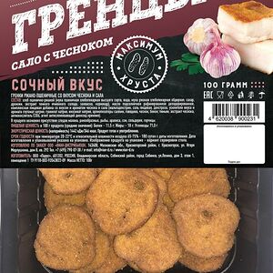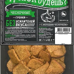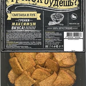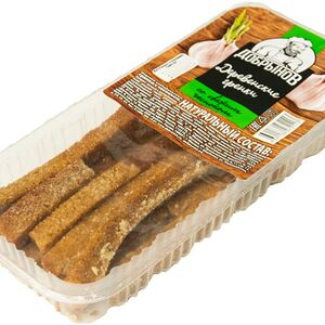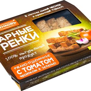 Сведения о составе: Хлеб ражаной пшеничный (мука ржаная хлебопекарная обдирная, мука пшеничная хлебопекарная 2 сорт, вода, соль, дрожжи хлебопекарные), масло подсолнечное рафинированное дезодорированное, комплексная пищевая добавка (выворотка молочная сухая, соль, лук, порошок, сахар, усилитель вкуса и аромата (Е621, Е627, Е631), мальтодекстрин, регуляторы кислотности (витаминная кислота, молочная кислота, лактат кальция), жир растительный, сушеная зелень, натуральные вкусоароматические вещества, агент антислеживающий (Е341)), соль пищеваяПищевая ценность: 420,10,14,64Условия хранения: 26Срок годности в днях: 270Страна изготовления: РоссияСведения об упаковке: ПакетПроизводитель: Производственная компания Фортуна