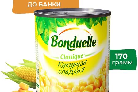 Кукуруза Bonduelle Classique сладкая 170г 100% натуральные консервы, изготовленные из отборных кукурузных зерен. Сочные и золотистые, они попадают в банку всего через 4 часа после сбора урожая. Зерна обладают сладковатым вкусом, отличаются упругой, но при этом нежной текстурой, приятно похрустывают на зубах. В составе нет ГМО и консервантов. Кукуруза вкусный и полезный продукт, служащий источником витаминов, минералов и пищевых волокон. Ее можно использовать для приготовления супов и салатов, а также подавать в качестве дополнения к основному блюду. Жестяная баночка снабжена удобным ключом для открывания. Bonduelle французская семейная компания, которая на сегодняшний день является мировым лидером в сфере переработки овощей. Вся продукция бренда соответствует строгим международным стандартам качества и безопасности.