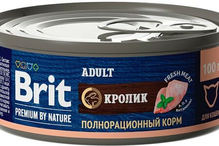 Влажный корм для кошек Brit Premium by Nature с мясом кролика 100г доставка