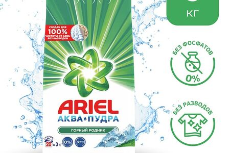 Стиральный порошок Ariel Горный родник Automat 3кг предназначен для машинной стирки вещей светлых оттенков. Благодаря отбеливающим компонентам он эффективно удаляет пятна с первого применения. Уровень качества Чистота Deluxe позволяет гранулам проникать глубоко в волокна ткани и выводить даже сильные загрязнения. Подходит для любого типа ткани, кроме шелка и шерсти. Отлично сохраняет цвет. Экономичный расход. Приятный освежающий аромат. Можно использовать при температуре от 30 до 90 градусов. Такой упаковки хватит примерно на 20 стирок.