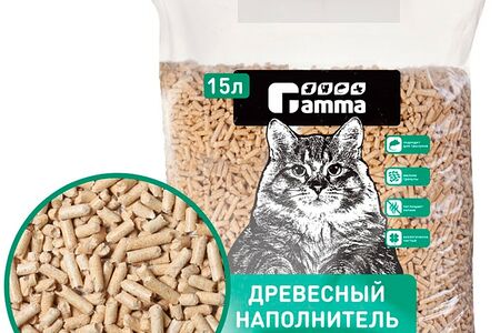 Наполнитель для кошачьего туалета Gamma древесный впитывающий мелкие гранулы 15л доставка