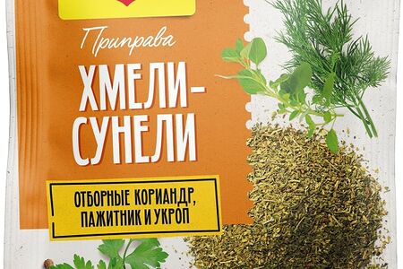 Приправа Maggi Хмели-сунели 20г – 100% натуральная смесь, приготовленная из пряных трав и специй. В ее состав входят только отборные и качественные ингредиенты: кориандр, укроп, пажитник, майоран, йодированная соль и другие. Приправа хмели-сунели широко используется в грузинской, абхазской и осетинской кухнях. Она отлично подойдет для приготовления традиционных кавказских блюд: чахохбили, харчо, аджапсандали, сациви, аджики, осетинских пирогов. Прекрасно сочетается с блюдами из мяса (свинины, говядины и баранины), птицы и рыбы. Не содержит глутамата и консервантов. Maggi – всемирно известный бренд, который гарантирует строгий контроль качества выпускаемой продукции на каждом этапе производства.