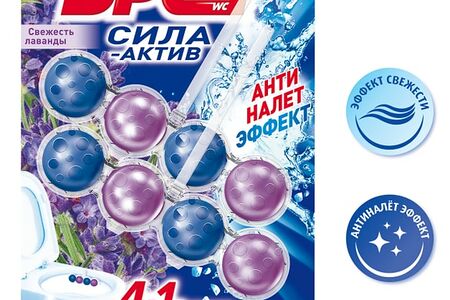 "Бреф Сила-Актив" с антиналет-эффектом — подвесной туалетный блок с формулой против известкового налета. Активная формула с антиналет-эффектом действует в 4 направлениях: образует очищающую пену, которая обеспечивает гигиеническую чистоту; предотвращает образование известкового налета; помогает предотвратить повторное загрязнение; придает туалетной комнате свежий аромат лаванды после каждого смывания. "Бреф Сила-Актив" придает антиналет-эффект при каждом смывании.