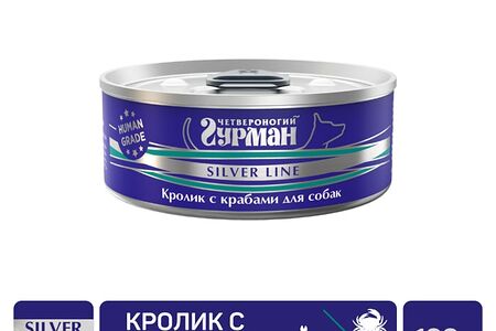 Корм консервированный для собак Четвероногий гурман Silver line Кролик с крабами 100г доставка