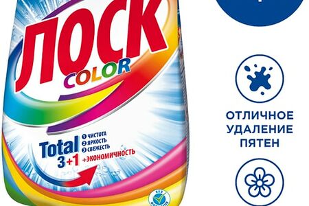 Порошок для стирки "Лоск Color" справляется с различными пятнами, сохраняет яркость цветного белья, дарит вещам приятный аромат. Работает в стиральных машинах любого типа и в воде любой жесткости. Эффективен уже при 30 ˚C. Не содержит фосфатов и хлорных соединений, безопасен для окружающей среды и кожи человека. 100% перерабатываемая упаковка.