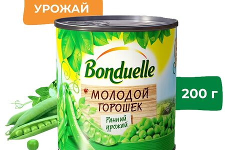 Горошек Bonduelle зеленый Молодой 212мл – 100% натуральный продукт, полностью готовый к употреблению. В составе нет ничего лишнего, только горох, вода, сахар и соль. Для производства консервов используется особый сорт горошка, который отличается очень нежным и по-летнему сладким вкусом. Бобы собирают на самой начальной стадии зрелости, поэтому горошинки имеют небольшой размер. Сочные и свежие, словно только что с грядки, они послужат идеальным гарниром, а также подойдут для приготовления разных блюд. Зеленый горошек – это ценный источник растительного белка, витаминов А, В1, В9, К и С, а также магния, фосфора, железа и цинка. Продукция не содержит ГМО. Жестяная банка оснащена ключом для открывания.