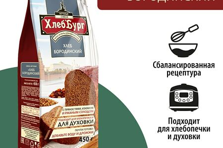 Смесь для выпечки ХлебБург Хлеб Бородинский 450г доставка