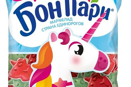 Бон Пари Страна Единорогов - новинка в сегменте жевательного мармелада. Единороги - один из главных молодежных трендов, а Бон Пари Страна Единорогов - восхитительный двуслойный жевательный мармелад без искусственных красителей.