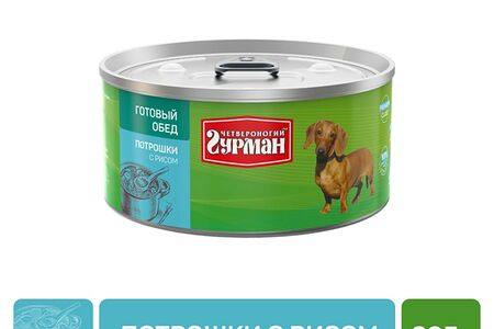 Корм консервированный для собак Четвероногий гурман Готовый обед Потрошки с рисом 325г доставка