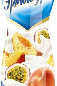 Сведения о составе: Обезжиренное молоко, вода, наполнитель «Персик-маракуйя» (персики, сок персиковый, сок маракуйи, вода, сахар, загустители: Е1422, ксантановая камедь; регуляторы кислотности: лимонная кислота, цитраты натрия; ароматизатор, краситель — каротины), сахар, глюкозно-фруктозный сироп, сливки, сухая молочная сыворотка, стабилизаторы: Е1422, пектины; желатин, с использованием йогуртовой закваскиПищевая ценность: 70,2.2,1.2,13Условия хранения: 25,2Срок годности в днях: 150Страна изготовления: РоссияСведения об упаковке: Пластиковая бутылкаПроизводитель: Эрманн