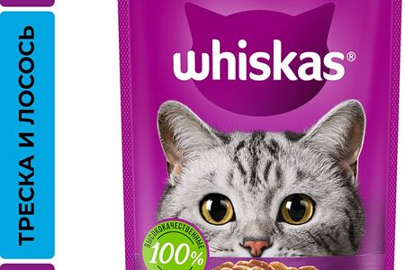 Влажный корм для кошек Whiskas Рагу с треской и лососем 75 г — полноценное питание с притягательным запахом и насыщенным рыбным вкусом, предназначенное для повседневного рациона взрослых животных от 1 года с умеренной активностью. Его сбалансированная формула учитывает повседневные потребности кошек в питательных веществах, необходимых для развития животного и поддержания здоровья его мышц, костей, зубов, шерсти, зрения и иммунной системы. Не содержит консервантов, усилителей вкуса и искусственных красителей. Следите за тем, чтобы в миске у кошки всегда была свежая вода. Подходит для стерилизованных животных.