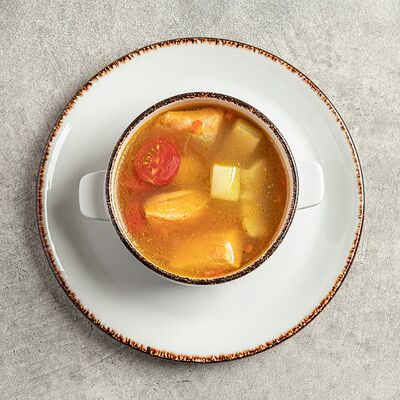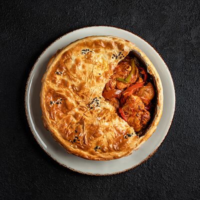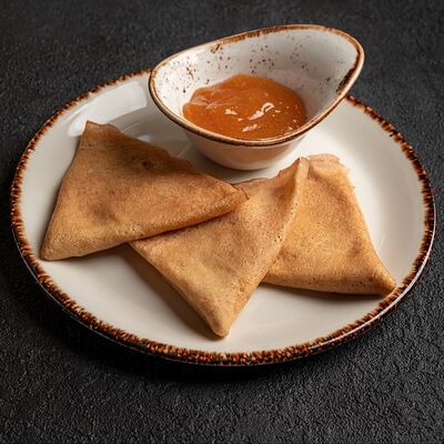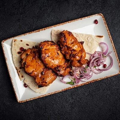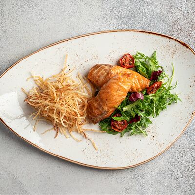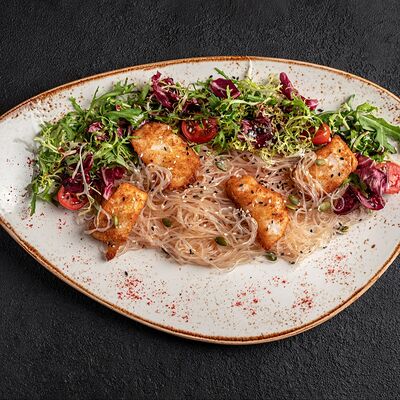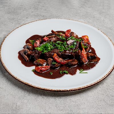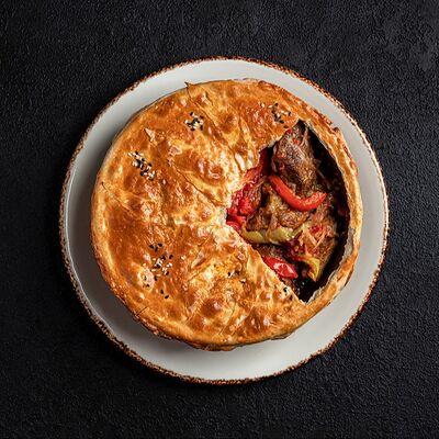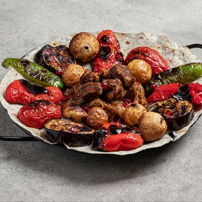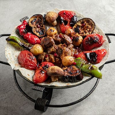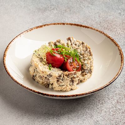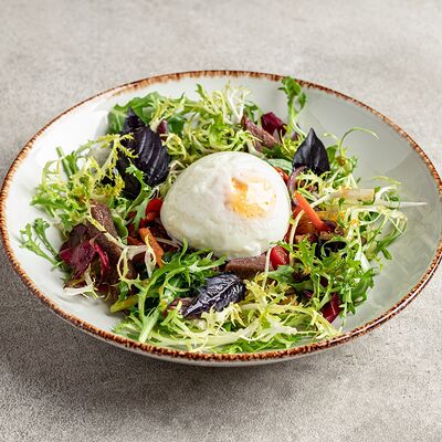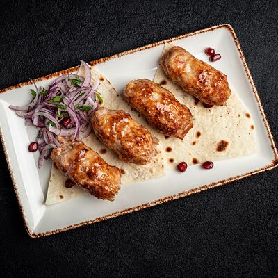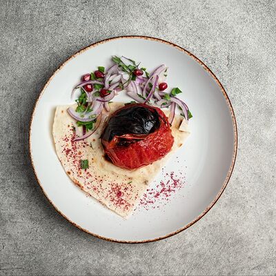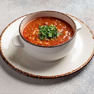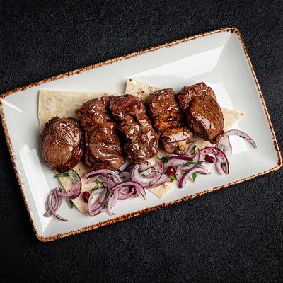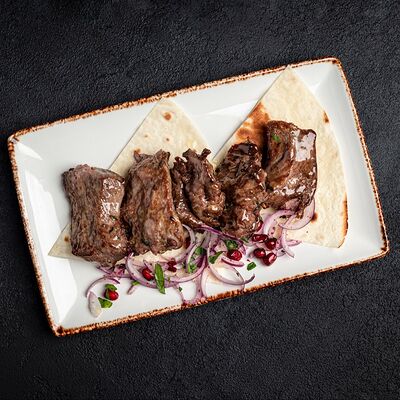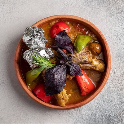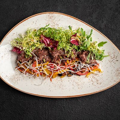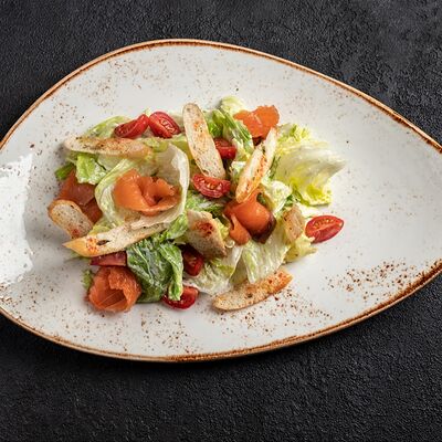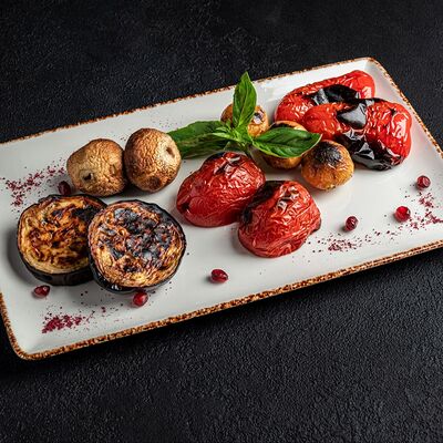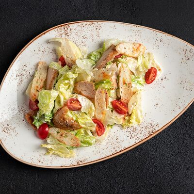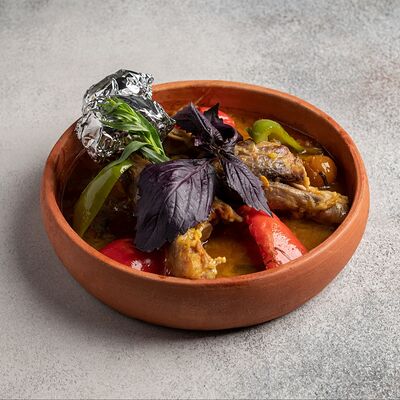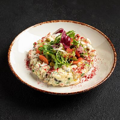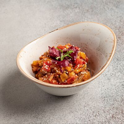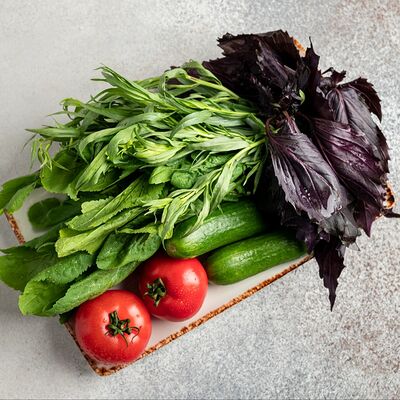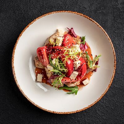 Салат из узбекских помидоров, бакинских огурцов, красного лука и базилика. Заправляется оливковым маслом