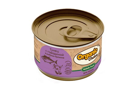 ORGANIC CHOICE для кошек консервы 70г Low Grain Тунец с Говядиной в рыбном бульоне доставка