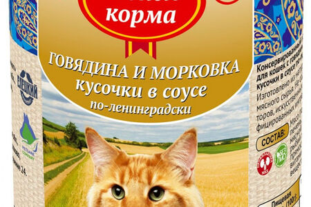 Влажный корм Родные Корма для взрослых кошек, кусочки в соусе по - ленинградски с говядиной и морковью 410 г доставка