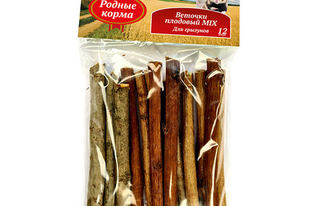 РОДНЫЕ КОРМА для грызунов Веточки плодовый MIX малина, смородина, черноплод. рябина 10см х 12шт 35г доставка
