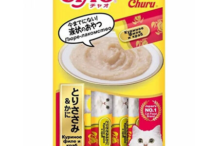Inaba Лакомство для кошек Inaba Ciao Churu Куриное филе с японским крабом, пюре 14г*4шт доставка