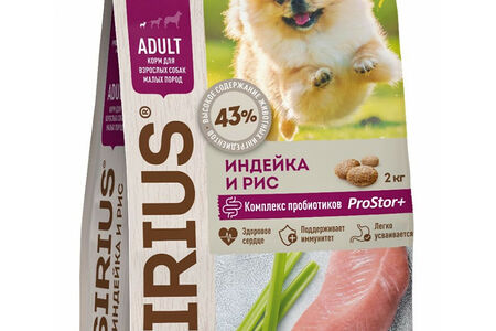 Sirius Sirius для взрослых собак малых пород Индейка и рис 2 кг доставка