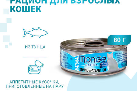 Корм влажный для кошек MONGE Cat Natural атлантический тунец доставка