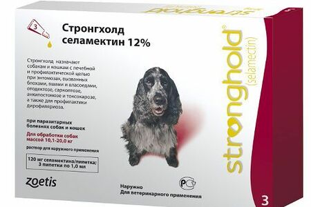 Капли для собак ZOETIS Стронгхолд от клещей, блох, гельминтов на 10-20кг (120мг) 1 пип. доставка