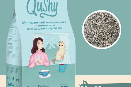 Qushy наполнитель минеральный комкующийся 6 кг., 18 л. доставка