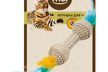 Triol Игрушка Natural для кошек из гофрокартона Гантель с перьями 100/200мм доставка