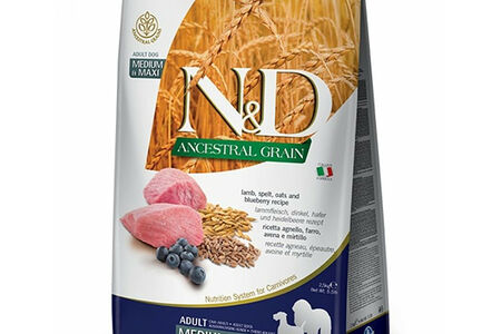 Farmina N&d ancestral grain Lamb & Blueberry Adult medium & maxi низкозерновой корм для собак средних и крупных пород, спельта, овес, ягненок и черника 2,5 кг доставка