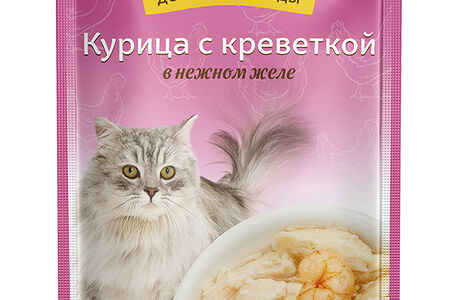 Деревенские лакомства пауч для кошек (кусочки в нежном желе) Курица и креветки доставка