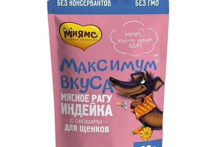 Влажный Корм для щенков Мнямс Максимум вкуса рагу индейка и овощи доставка