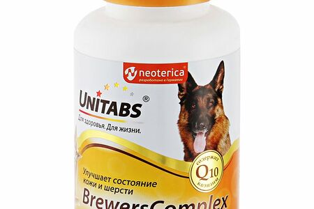 Витамины для собак ЭКОПРОМ Unitabs BreversComplex с Q10 и пивными дрожжами, для крупных пород, в таблетках, 100шт доставка