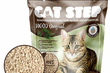 Cat Step Wood Original наполнитель древесный комкующийся 2,3 кг. доставка