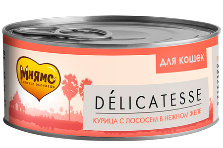 Мнямс консервы для кошек (кусочки в желе) Курица и лосось доставка