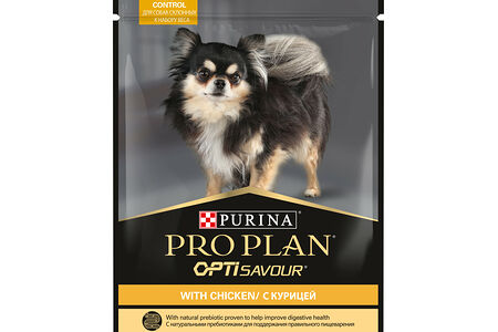 Влажный корм Pro Plan для взрослых собак мелких и карликовых пород, склонных к набору веса, с курицей в соусе, Пауч, 85 г доставка