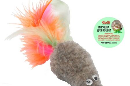 GoSi игрушка "Мышь с мятой и хвостом перо пышное" для кошек Серый доставка