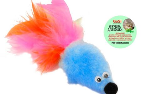 GoSi игрушка "Мышь с мятой и хвостом перо пышное" для кошек Голубой доставка
