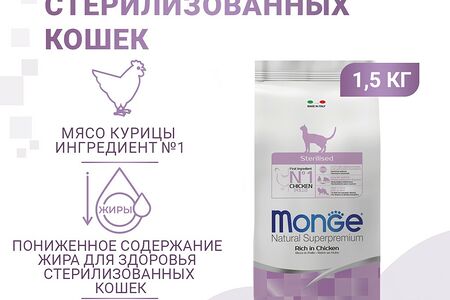 Monge cat sterilized корм для Стерилизованных кошек 1,5кг доставка