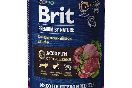 Корм влажный Brit Premium By Nature для взрослых собак ассорти с потрошками доставка