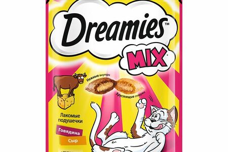 Лакомство для кошек Dreamies Mix подушечки говядина с сыром доставка