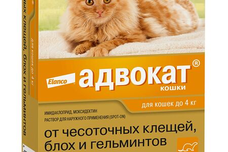 Адвокат для кошек до 4 кг 1 пипетка, 0,4 мл. доставка