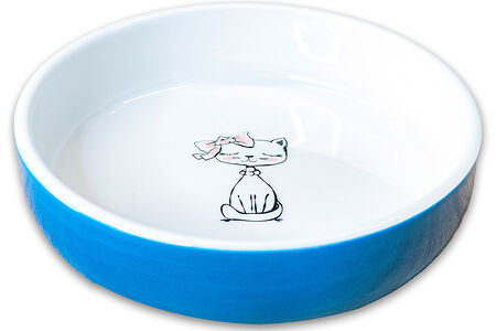 КерамикАрт миска керамическая "Кошка с бантиком" для кошек 370 мл., Голубой доставка