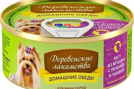 Деревенские лакомства консервы "Домашние обеды ягнёнок с печенью и тыквой" для собак мини пород Ягненок и печень доставка