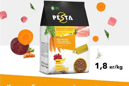 Pesta сухой корм "Кордон блю с курицей, морковью и свеклой" для взр. собак средних и крупных пород Курица, морковь и свекла, 1,8 кг. доставка