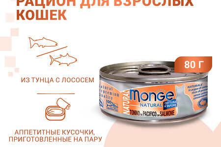 Monge Cat Natural консервы для кошек (кусочки) Лосось и тунец доставка