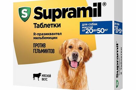 Антигельминтик для собак СУПРАМИЛ массой 20- 50кг, 2 табл. доставка