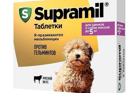 Supramil Таблетки от гельминтов для щенков и собак массой до 5 кг, 2 таблетки доставка