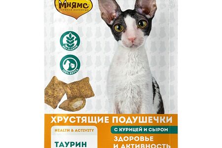 Хрустящие подушечки для кошек Здоровье и активность Мнямс с начинкой Курица и сыр доставка
