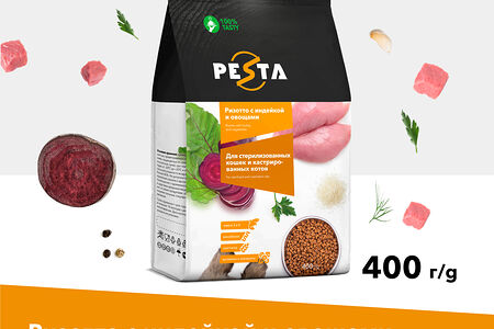 Pesta сухой корм "Ризотто с индейкой и овощами" для стерилизованных кошек и кастрированных котов Индейка и овощи доставка