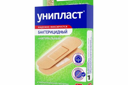 Лейкопластырь "Натуральный", Унипласт, имеет антисептическую пропитку и обладает бактерицидным свойством. Надежно фиксируется к коже. Не прилипает к ране. На 100% состоит из хлопка, что позволяет коже дышать. Незаменимая вещь в дорожной и домашней аптечке. Количество: 20 шт.