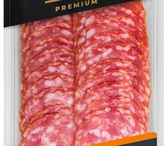 Колбаса Черкизово Сальчичон сырокопченая 100г приготовлена по оригинальному испанскому рецепту из отборной свинины с добавлением шпика и средиземноморских специй. На срезе видны плотные куски свиного филе и фрагменты жира различного размера. Вкус яркий, пряный, в меру соленый и острый, с насыщенным ароматом копчения. Такая нарезка подойдет не только для бутербродов, но и станет изысканным деликатесом для праздничного застолья, фуршета или вечеринки в кругу друзей. Тонкие ломтики упакованы в жесткий вакуумный лоток.